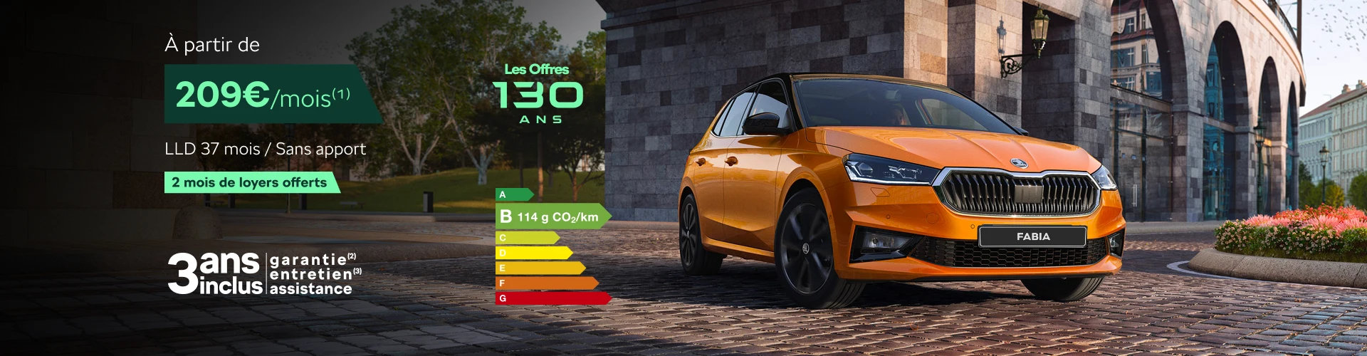 Škoda Fabia à partir de 209€/mois⁽¹⁾, sans apport.