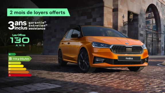 ** Modèle présenté : Škoda Fabia Selection 1.0 TSI 95ch BVM au prix de 23 030 € remise déduite. 2 mois de loyers offerts après 1er loyer de 304€ suivi de 34 loyers de 304€, en location longue durée et 30 000km. Dans la limite des stocks disponibles. Prix conseillé au 05/11/2024, pour une Škoda Fabia Selection 1.0 TSI 95ch BVM remise ŠKODA de 4 200€ déduite du prix catalogue. Offre réservée aux particuliers en France métropolitaine cumulable avec toute autre offre en cours, dans le réseau Škoda participant, pour l’achat d’une Škoda Fabia Selection 1.0 TSI 95ch BVM. Offre valable du 1 janvier 2025 au 31 mars 2025.
