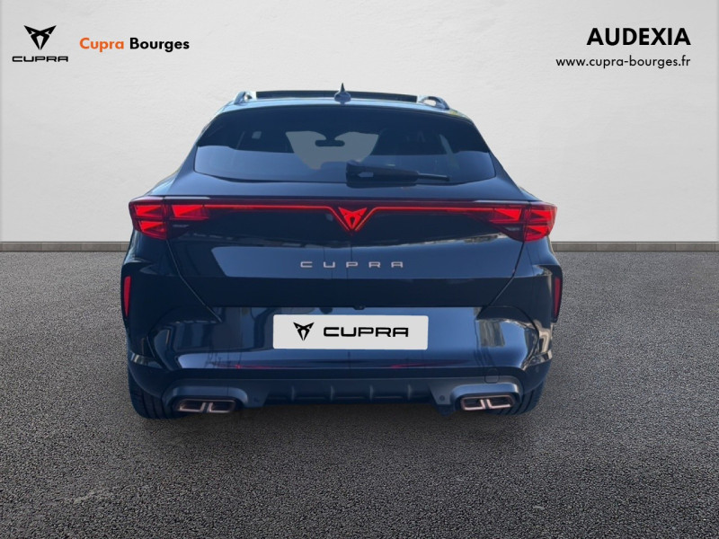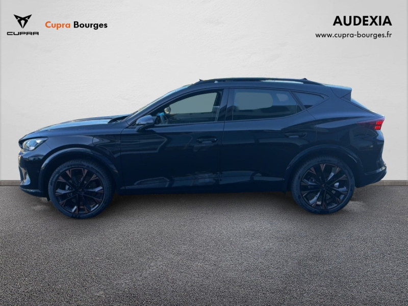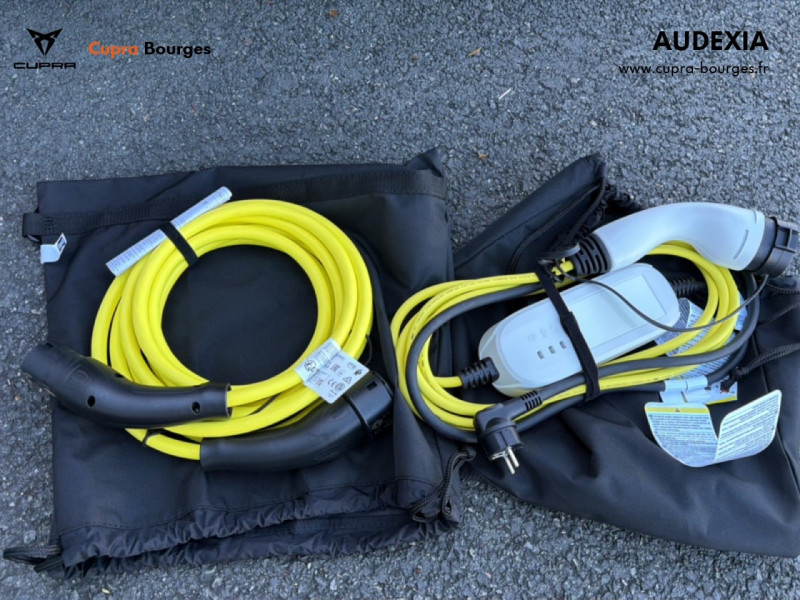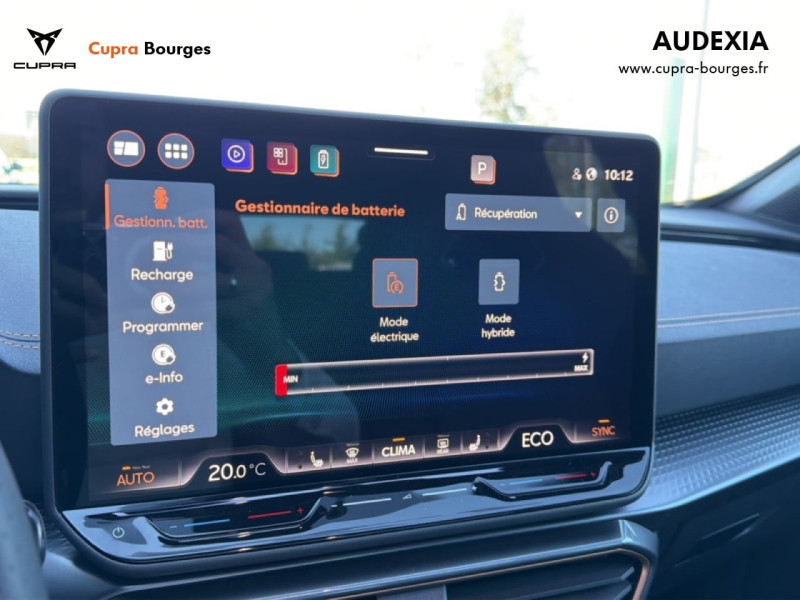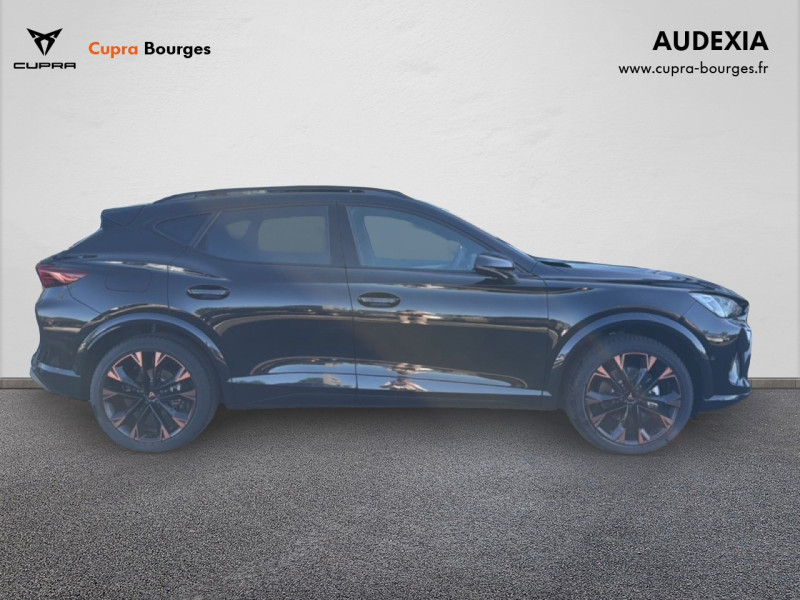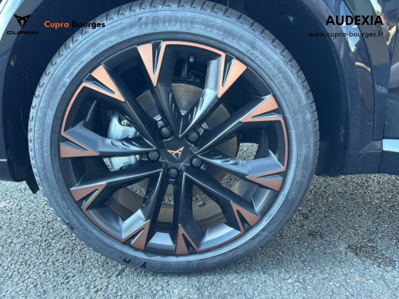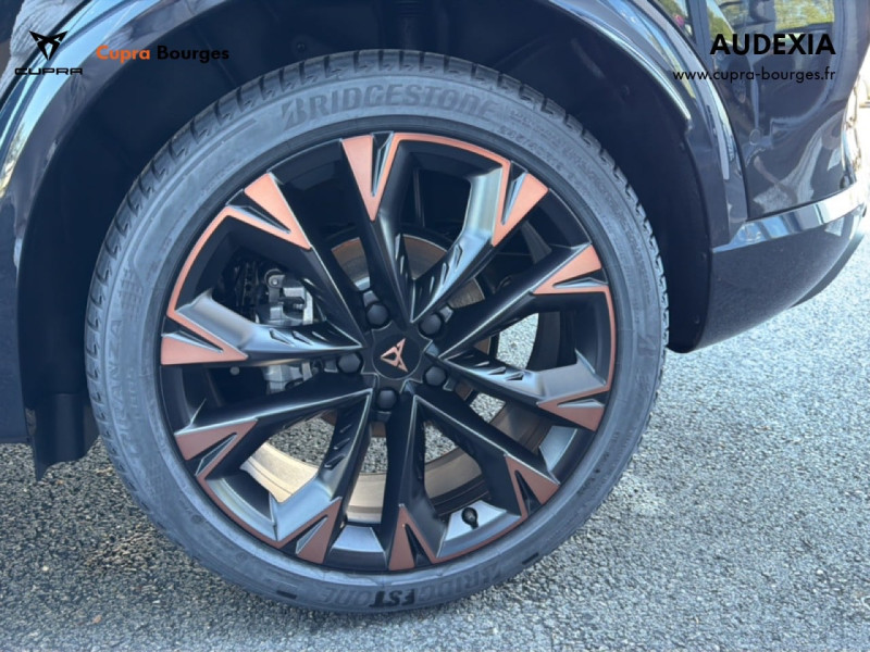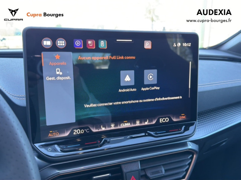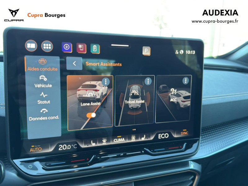 Design intérieur Progressive – Sièges baquets cuir Gris Lunaire avec surpiqûres cuivrées – Logos CUPRA embossés sur les appuie-têtes – Planche de bord Gris Lunaire surpiquée avec inserts Dark Alu – Contre-portes en TEP noir surpiqués – Sièges conducteur et passager chauffants avec réglage électrique à mémoire, y compris réglage lombaire